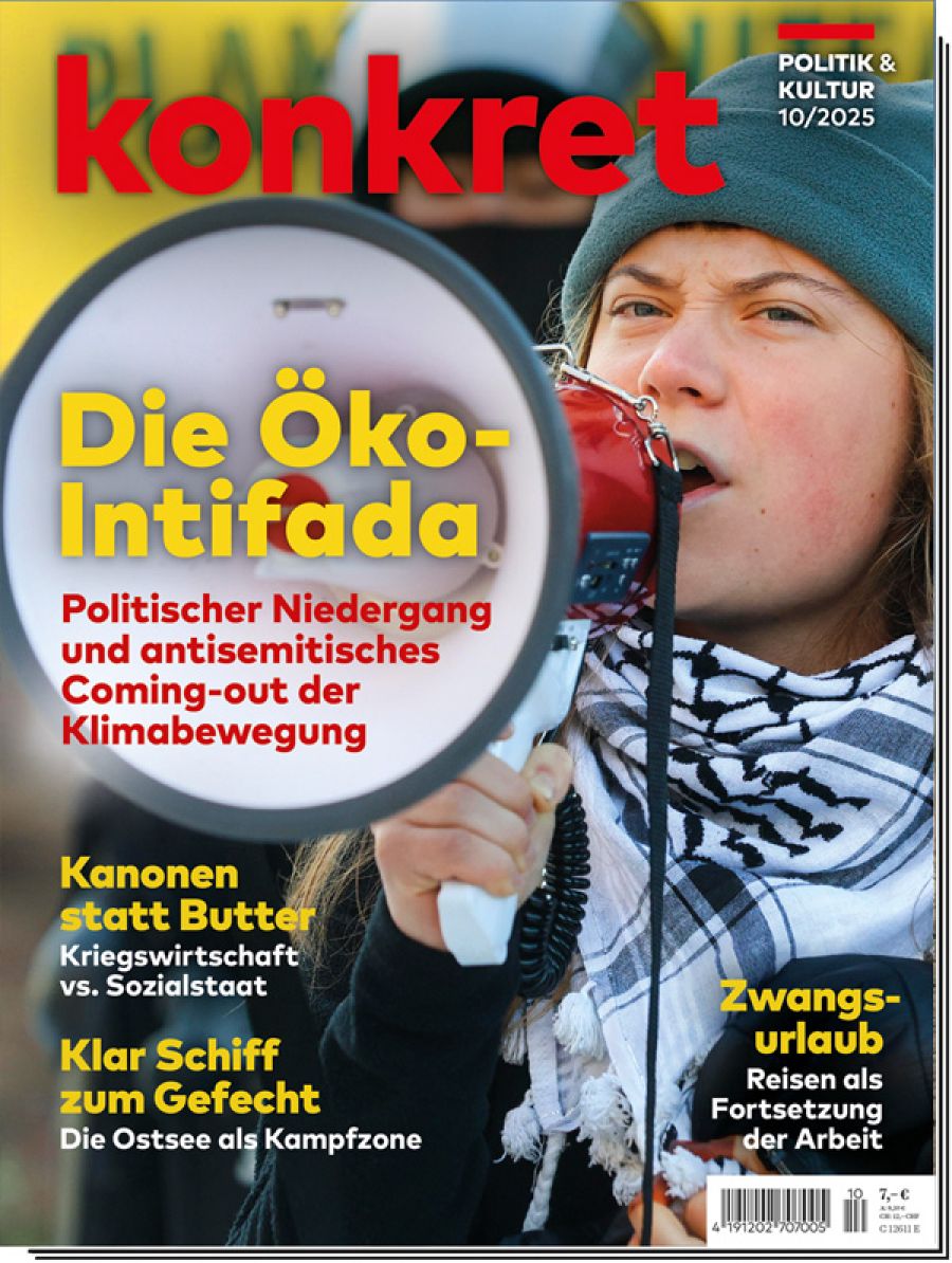 Jetzt eintragen und zweimal im Monat den konkret-Newsletter erhalten. Mit Texten aus dem aktuellen Heft, Nachrichten aus dem Politik- und Kulturbetrieb sowie Kommentaren der Redaktion.