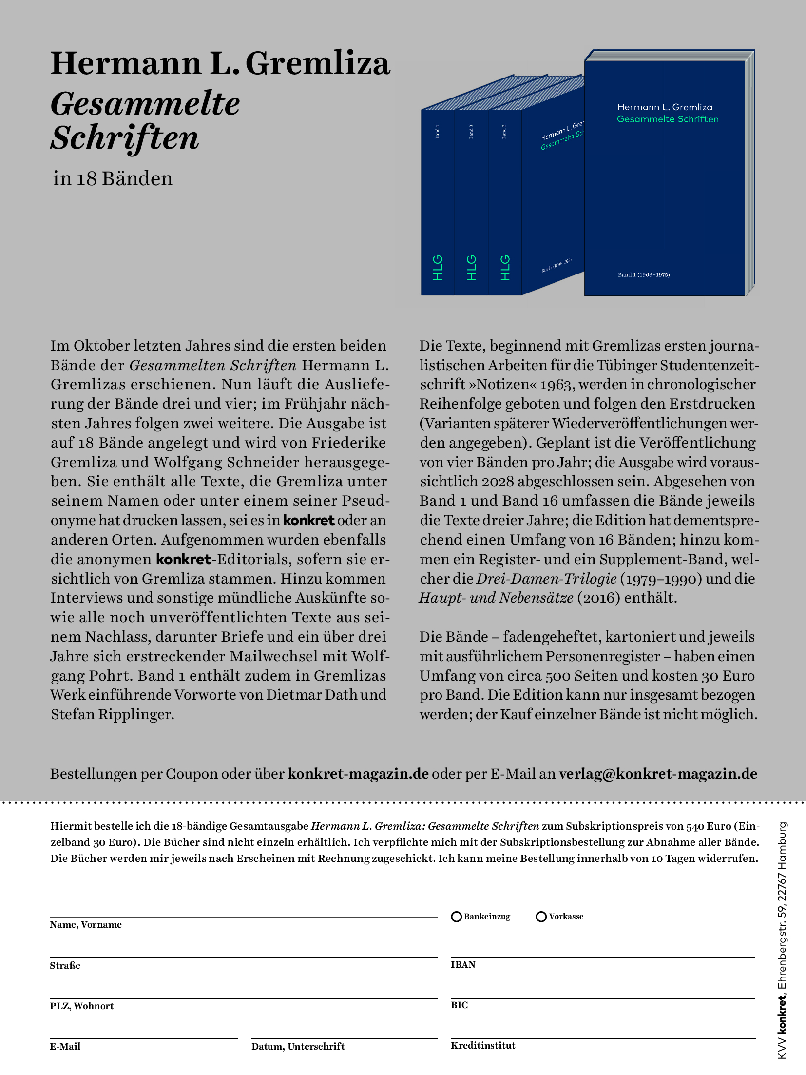 Hermann L. Gremliza Gesammelte Schriften in 18 Bänden.